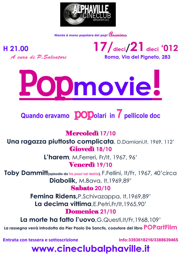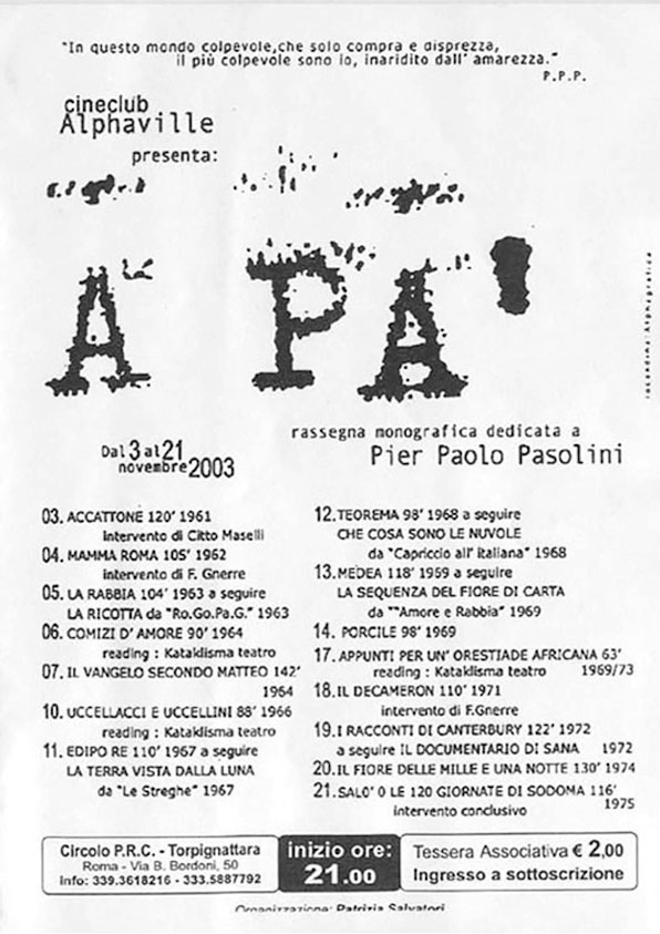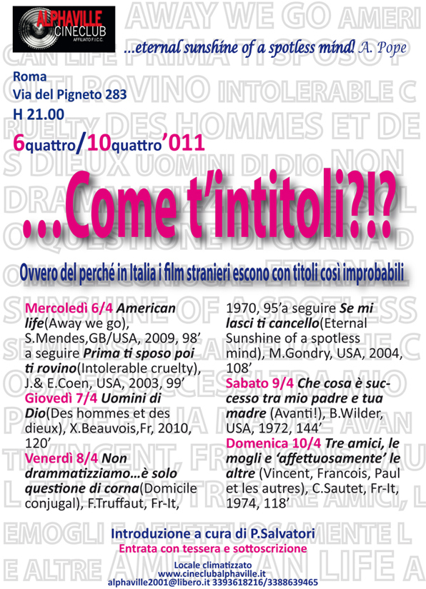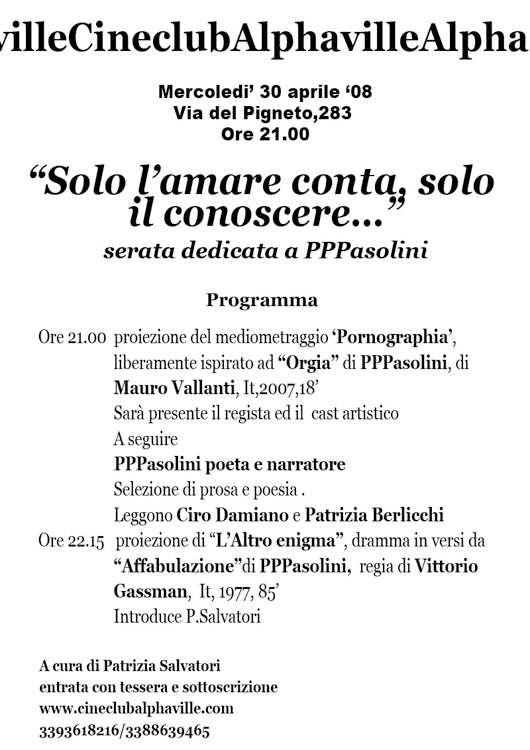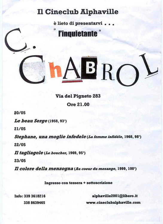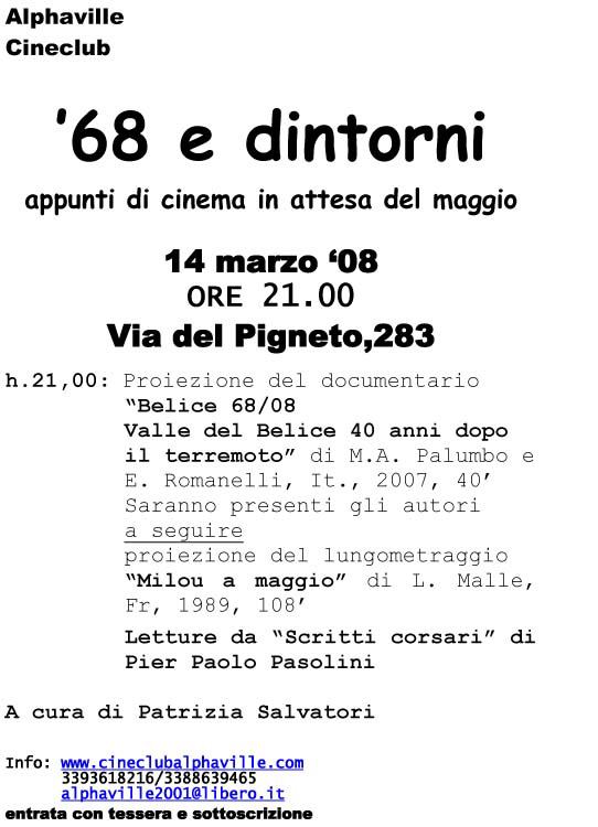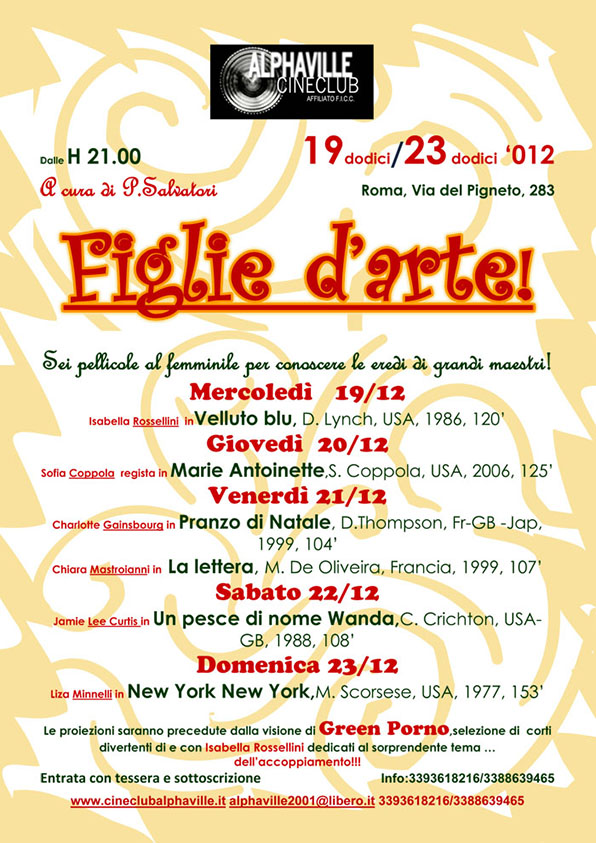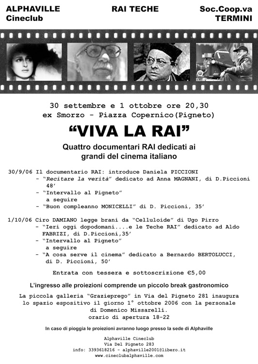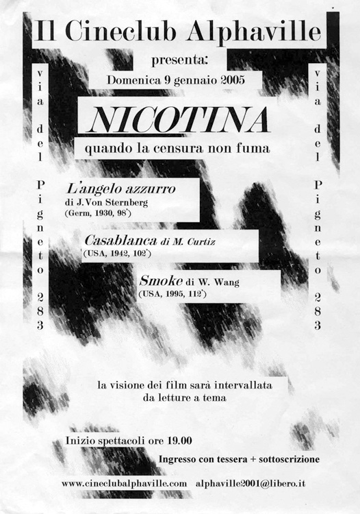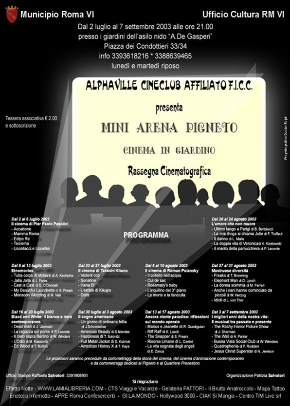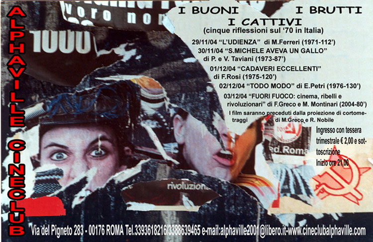 Ecco tutte o quasi tutte le locandine dei nostri eventi, se vuoi, dagli un'occhiata per farti un'idea dell'attività del Cineclub dalla nascita ad oggi.